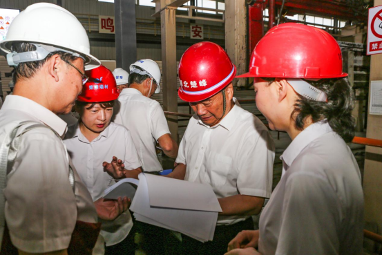 在荊州開元,董事(shì)長孫春光了(le)解到生(shēng)産一(yī)線設有黨員(yuán)示範崗位時(shí),專程前往看望了(le)值班黨員(yuán)唐軍,與他進行了(le)交流感受,臨走前叮囑防暑降溫、安全生(shēng)産等事(shì)項。