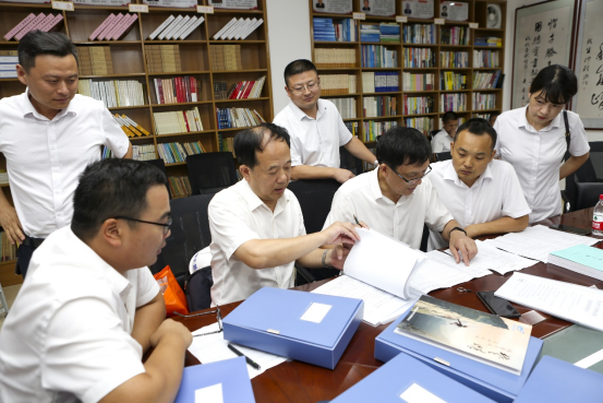 董事(shì)長孫春光(右二)親自查閱荊州開元文明衛生(shēng)綜合記錄材料