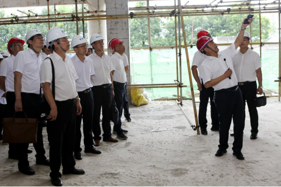 在大疆基建項目現(xiàn)場(chǎng),董事(shì)長孫春光親自為(wèi)各考評小組成員(yuán)介紹了(le)項目的規劃設計、樓層功能(néng)等。
