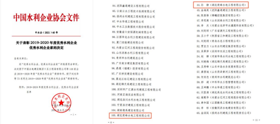 楚峰水電又獲“全國優秀水利企業”榮譽稱号 |